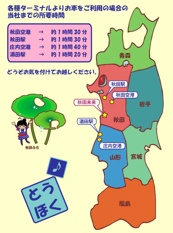 ★羽越本線仁賀保駅から約1.6Km ★日本海東北自動車道にかほインターチェンジから約3Km